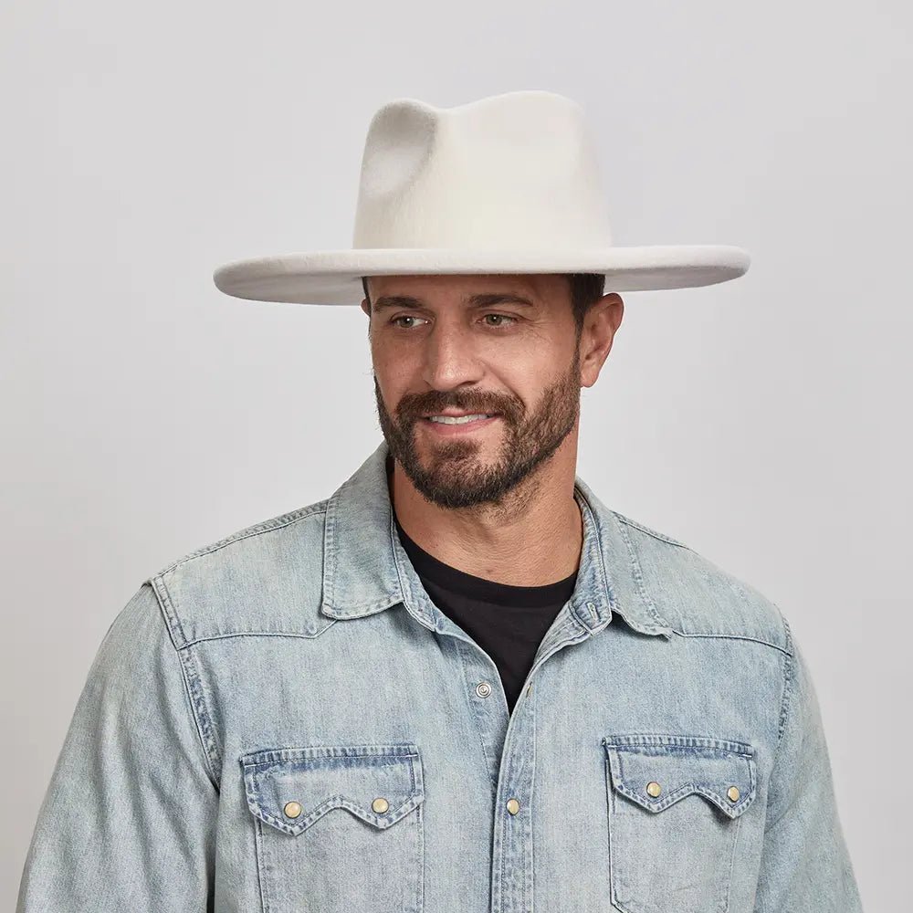 Hudson Mens Pencil Rim Felt Fedora Hat White
