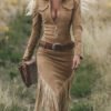 Retro Western Lapel Zipper Long Sleeve Tassel Midi Dress