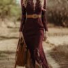 Vintage Bohemian Lace Long Sleeve Midi Dress